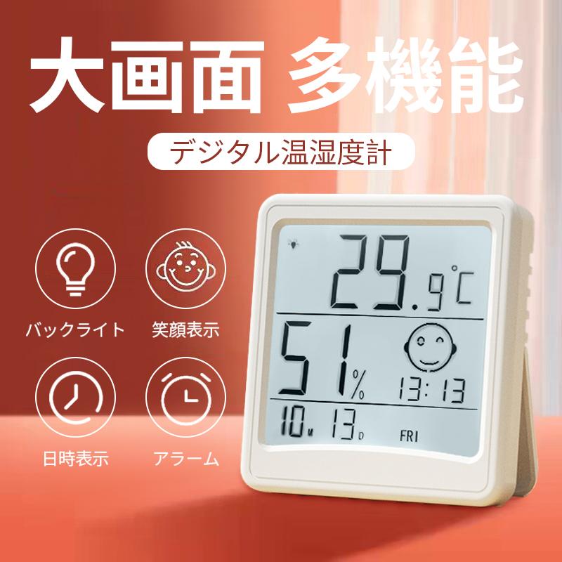 アイコンで一目で分かる デジタル温湿度計 湿度計 温度計 電池付 熱中症 インフルエンザ 風邪 カビ 肌ケア ベビー 温湿度計 おしゃれ 湿温度計 温度湿度計 湿度温度計 高精度 時計機能 日付 卓上 壁掛け スタンド 小型 アラーム付 バックライト機能 Mcds Fr